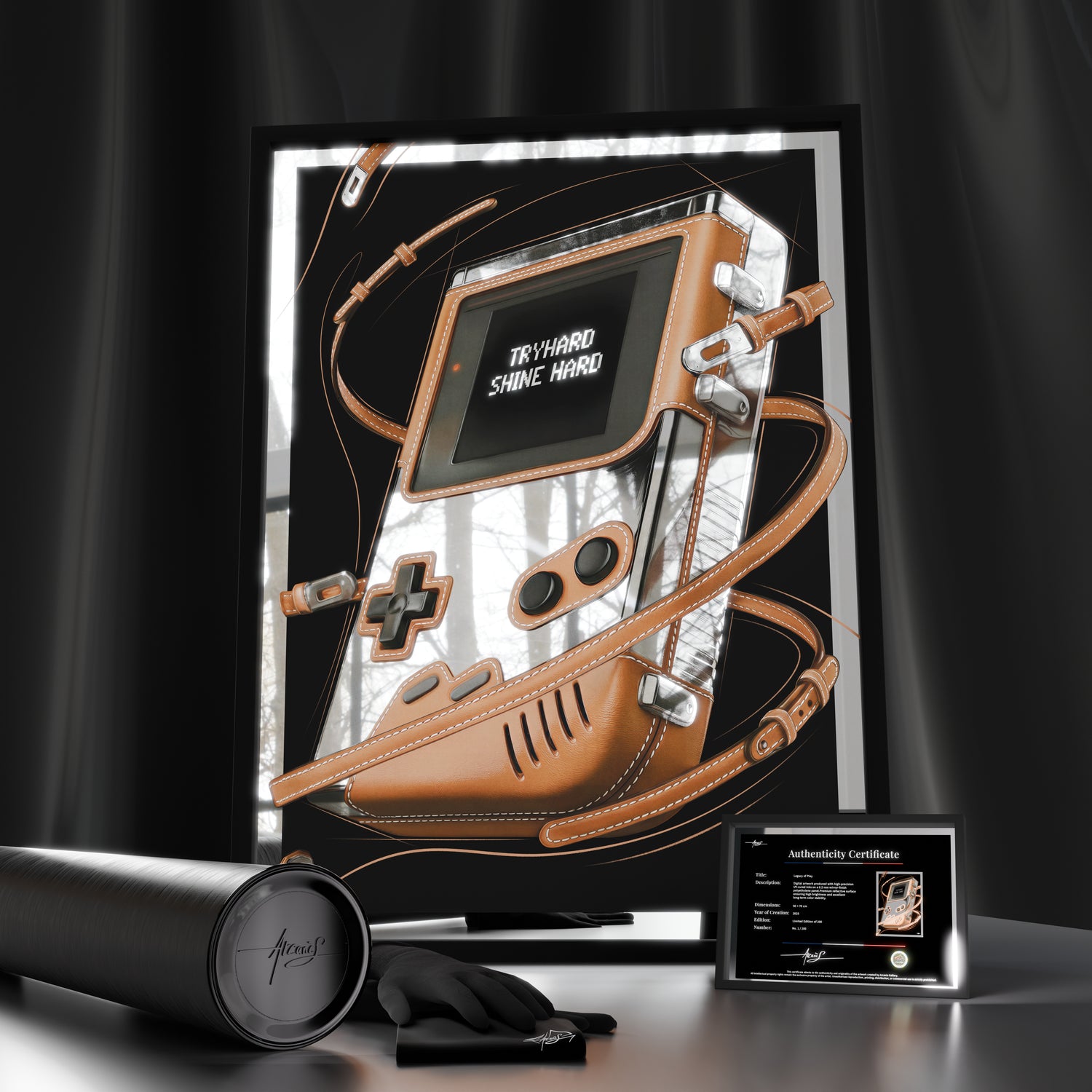 Jedes Arcanis-Kunstwerk wird in eigener Manufaktur mit exklusiven Techniken und UV-Druckverfahren speziell für spiegelnde Oberflächen gefertigt. Hochwertige Materialien, eine verstärkte Verpackung und ein Zertifikat gegen Fälschungen gewährleisten die vollständige Kontrolle vom Anfang bis zum Ende – für zuverlässige, langlebige Kunstwerke, die sofort ausgestellt werden können.