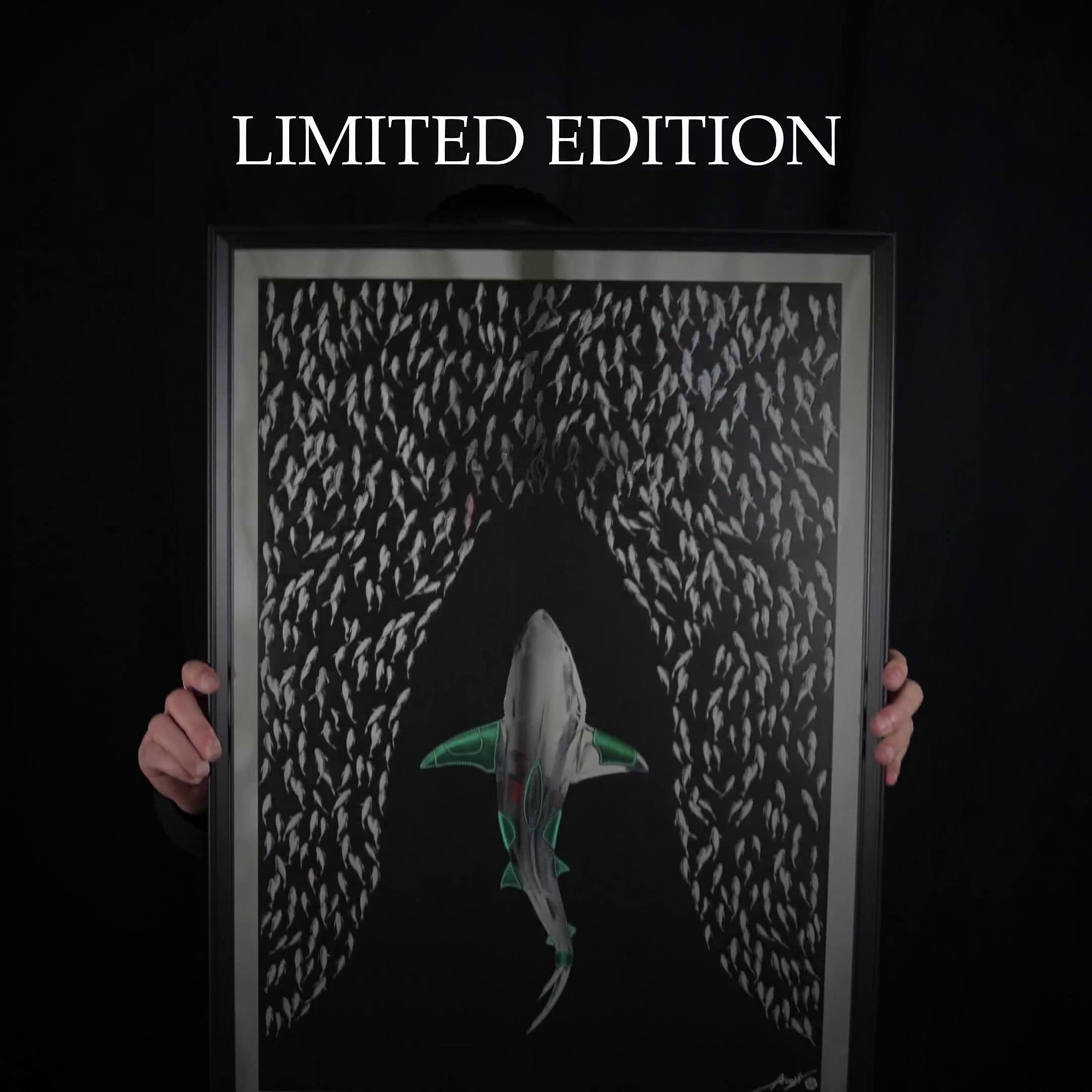 Imprimé sur un support à effet miroir, numéroté individuellement, signé à la main et sécurisé par un badge holographique anti-contrefaçon.