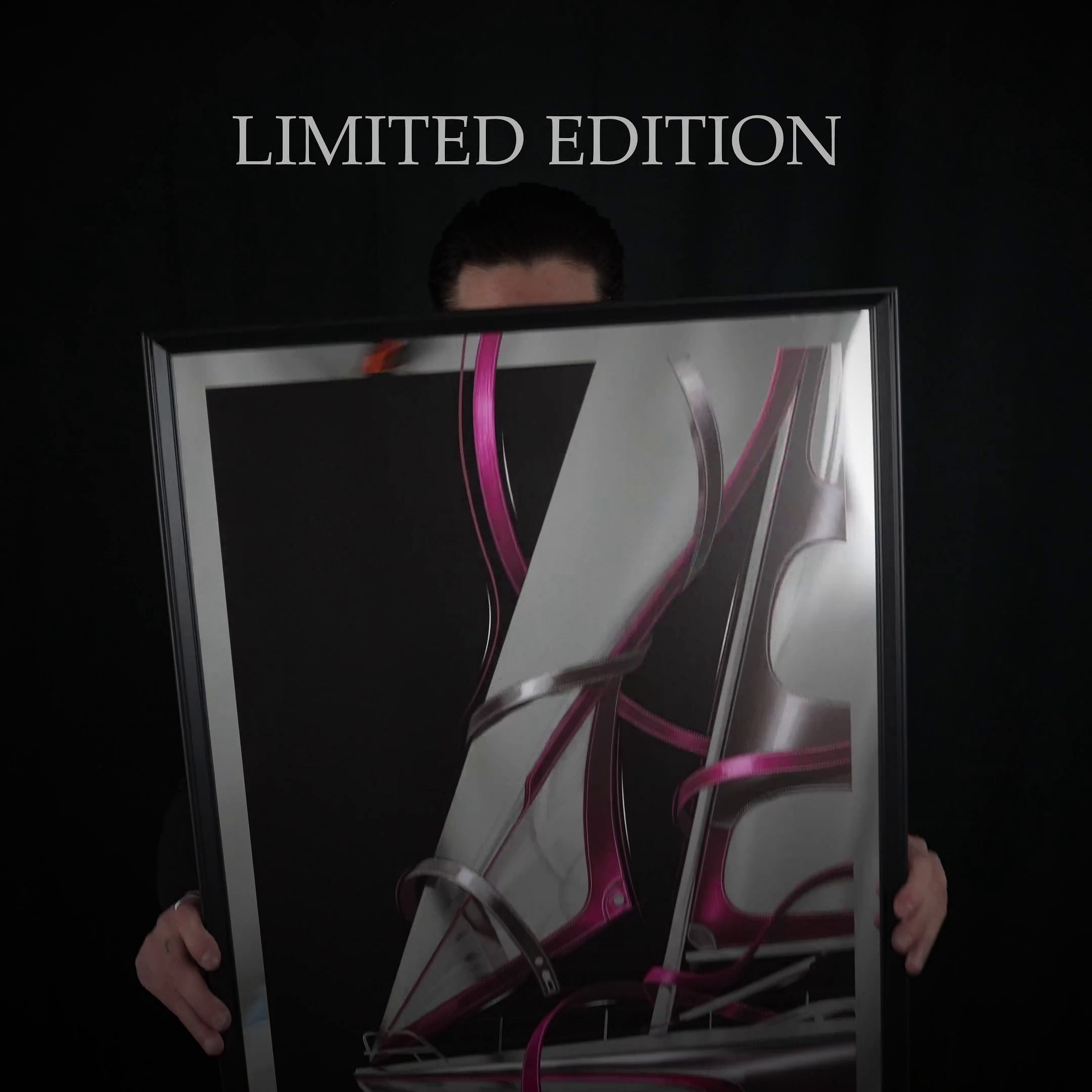 Trykt på materiale med speilfinish, individuelt nummerert, håndsignert og sikret med et holografisk merke mot forfalskning.