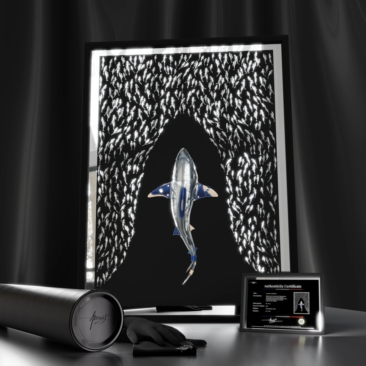 Trykt på speilblankt materiale, individuelt nummerert, håndsignert og sikret med et holografisk anti-forfalskningsmerke.