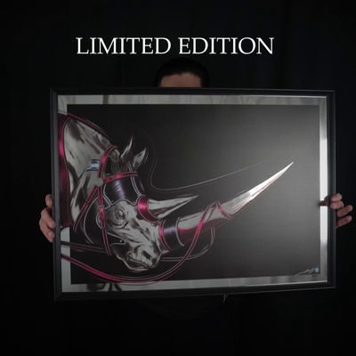 Printed on mirror-finish material, individually numbered, hand-signed, and secured with an anti-counterfeit holographic badge.