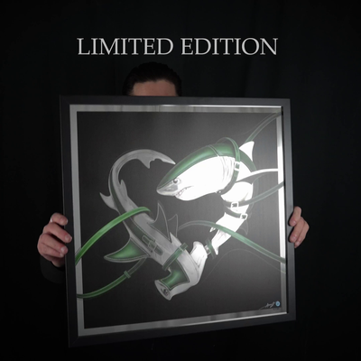 Printed on mirror-finish material, individually numbered, hand-signed, and secured with an anti-counterfeit holographic badge.